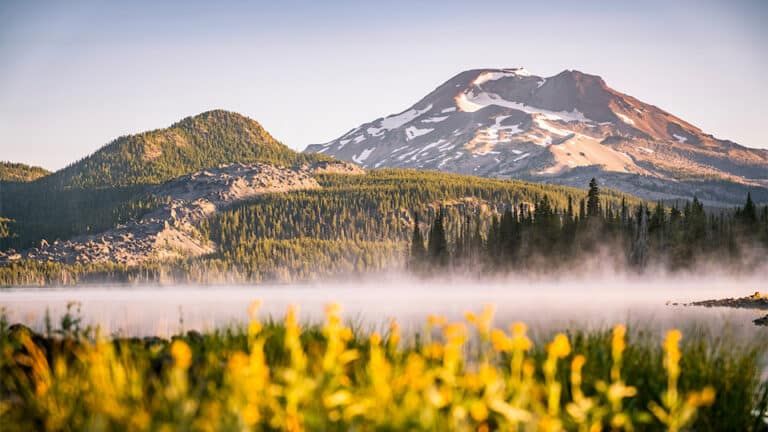One of the most interesting places to visit in the Bend area is Newberry National Volcanic Monument, where you can explore numerous attractions of the Newberry Volcano. Stand on top of Lava Butte, a cinder cone that rises to 500 feet above the surrounding landscape, looking out over the old lava flow, or walk underground through the Lava River Cave, a one-mile-long lava tube. In another area of the monument, you'll find beautiful lakes and mountain peaks, with wonderful hiking and camping opportunities. The monument has two main access points. Twenty minutes south of Bend off Highway 97 is the Lava Lands Visitor Center, from where you can ascend Lava Butte or visit the Lava River Cave. The Chitwood Exhibit Hall here provides a wealth of information on the geology of the area and details on things to see and do in the monument, as well as current conditions.