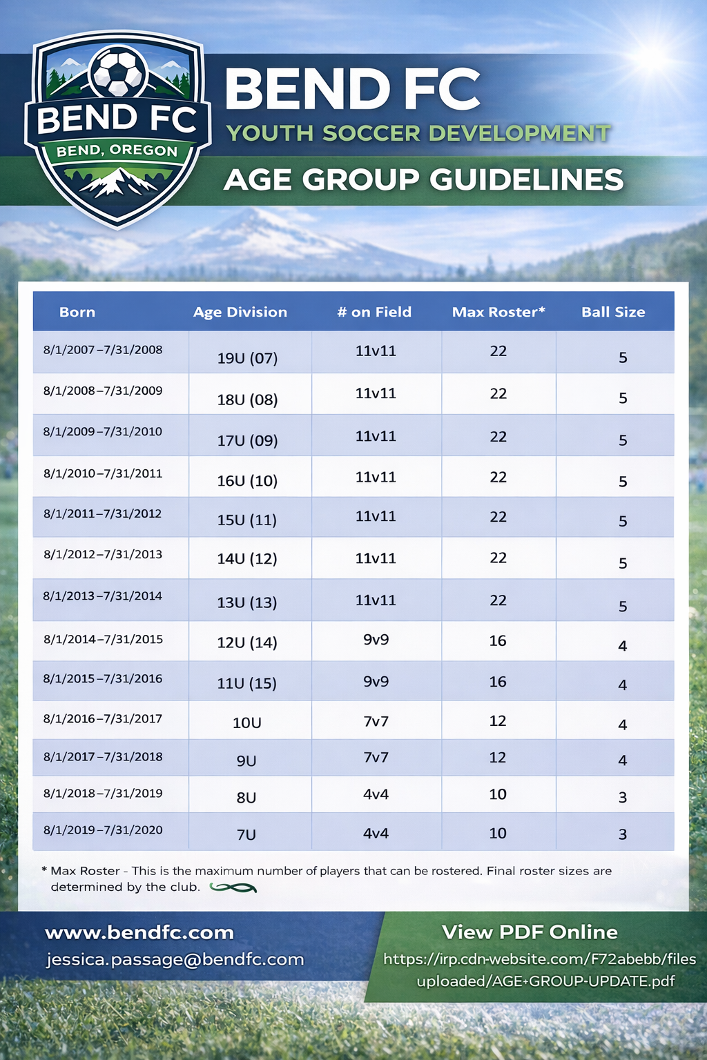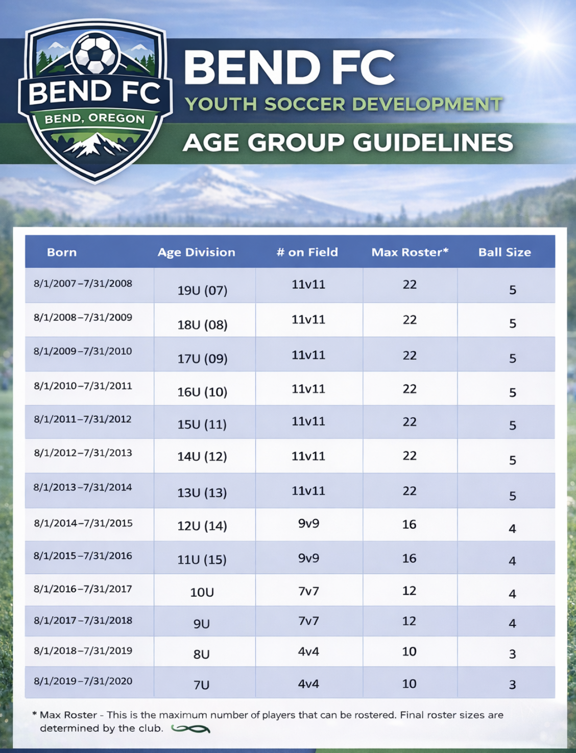 Players born in 2016, 2017 & 2018 for the 2025/26 season