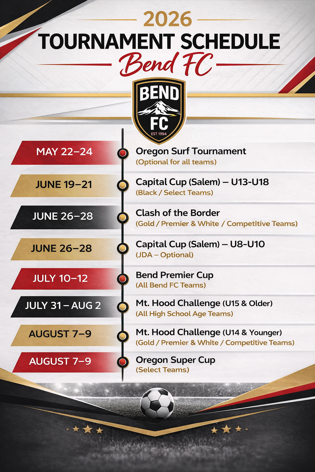 Bend FC, is a 501(c)(3) nonprofit organization, EIN #20-2573582. Your donations are tax-deductible to the extent permitted by law.